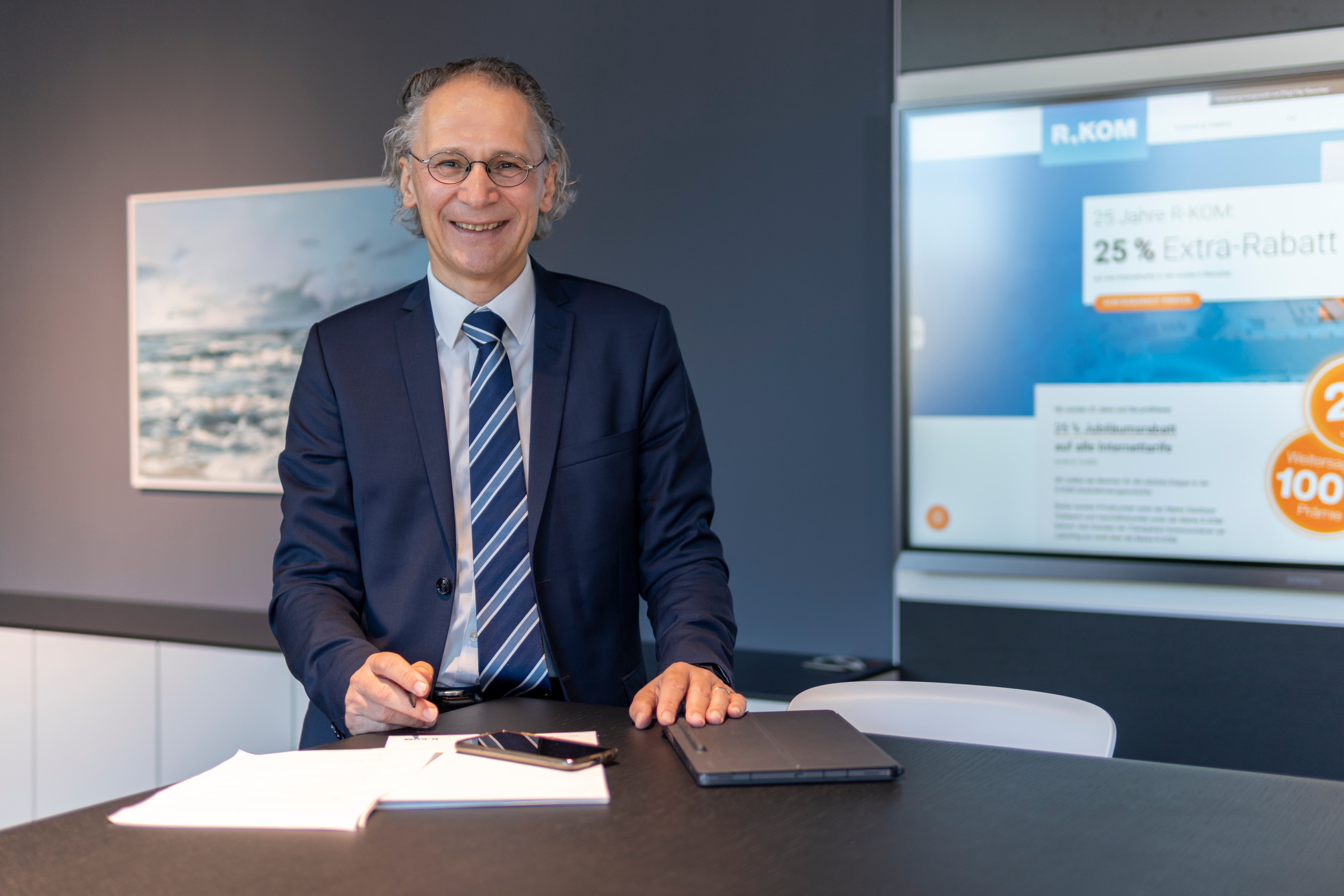 Alfred Rauscher begleitet die R-KOM seit 1999 als Geschäftsführer. Bei der Gestaltung des neuen Firmensitzes in der Kastenmaierstraße lag ihm besonders die Integration von Kunst im Büro am Herzen. Zum ersten Mal konnte so eine Arbeitsumgebung entstehen, in der Gestaltung, Kunst und Funktion zusammenwirken – ein Spiegel der Philosophie und Kreativität der R-KOM.