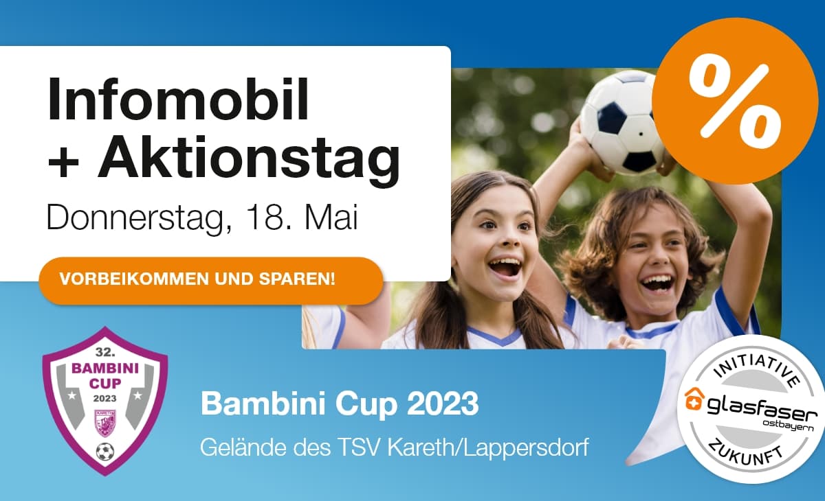 Am Donnerstag, den 18.05.2023, findet ab 9:30 Uhr das diesjährige Bambini Vatertagsturnier des TSV Kareth-Lappersdorf statt. Die R-KOM ist vor Ort mit Infostand und Torwandschießen vertreten.